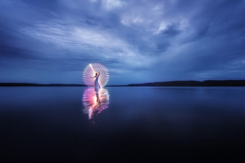 I've been experimenting with two light-painting tubes in the past few years, but managing one tube in each hand, plus the trigger, felt limiting because I couldn't turn them on and off easily. Simply put, I didn't enjoy the process.