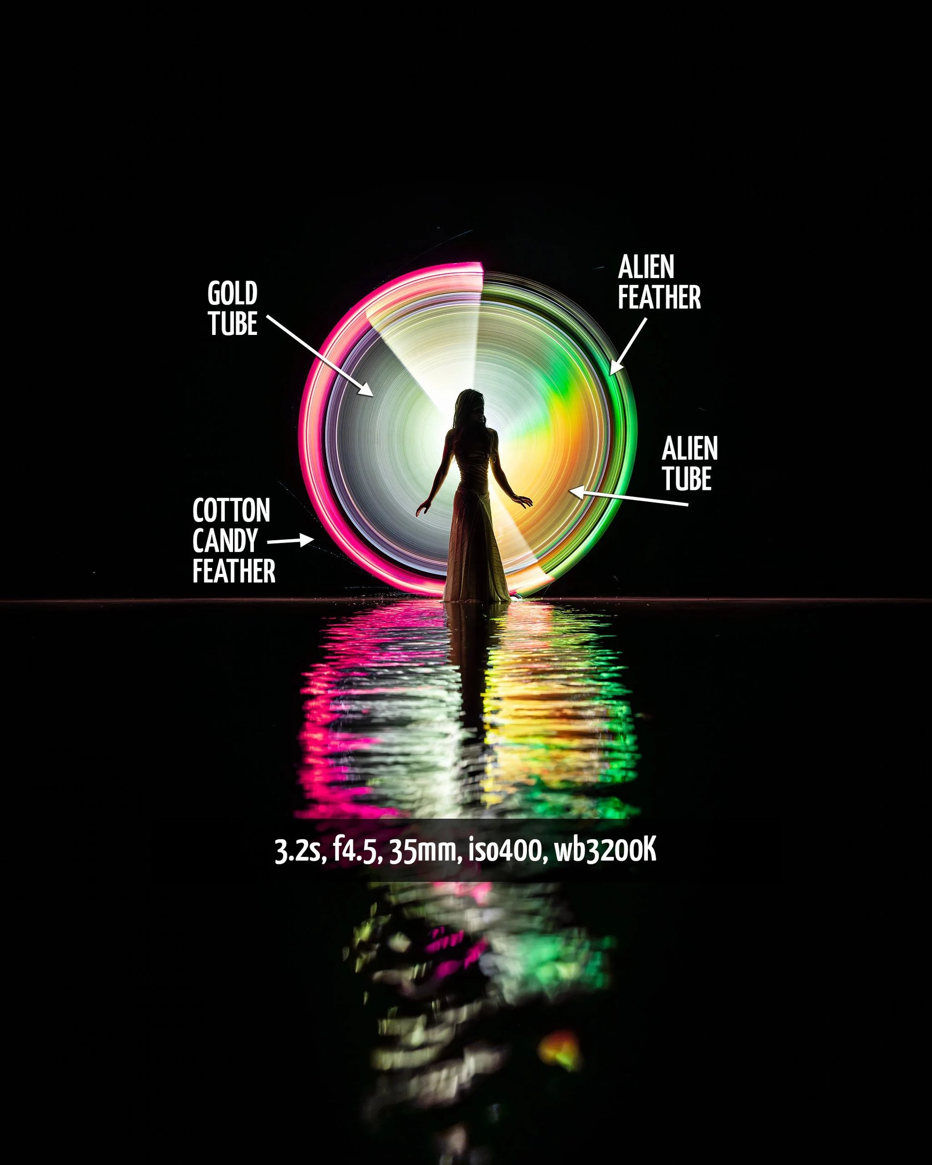 Si vous voulez voir exactement comment je tiens l'outil et pourquoi je préfère garder le système simple, consultez Comment je tiens le tube en light painting.