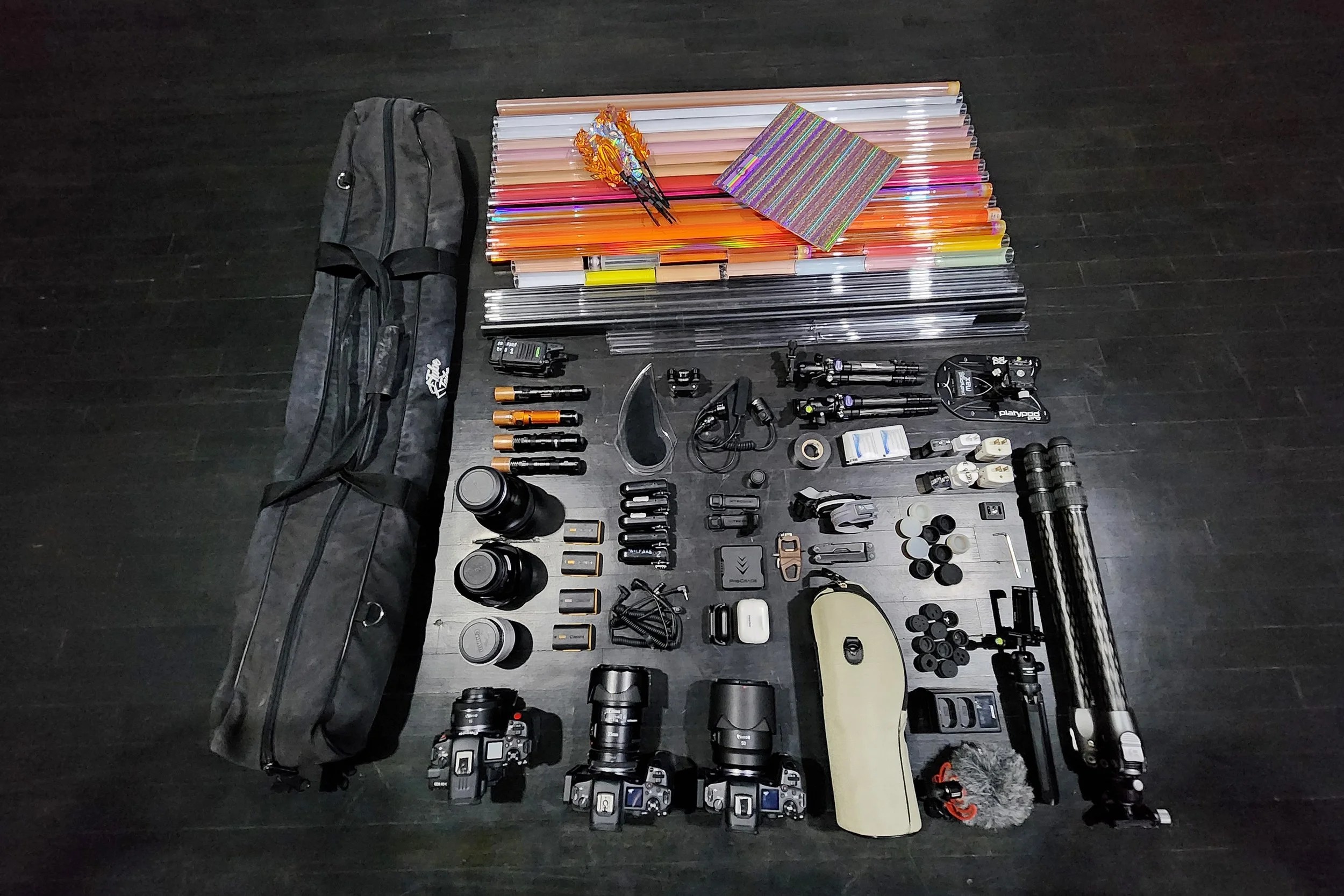 - Lenses: EF24mm f1.4, EF35mm f1.4, Art 14mm f1.8, RF50mm f1.2, EF400mm f5.6, 2x teleconverter